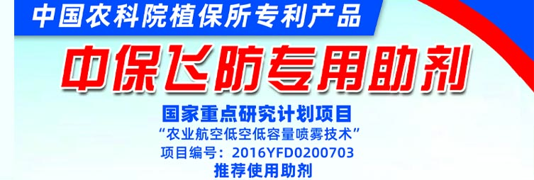 中國農(nóng)科院植保所專利產(chǎn)品(發(fā)明專利 專利號(hào):ZL201310284870.1):本品為國家重點(diǎn)研究計(jì)劃項(xiàng)目“農(nóng)業(yè)航空低空低容量噴霧技術(shù)”(項(xiàng)目編號(hào):2016YFD0200703)承擔(dān)單位推薦使用助劑。本品在飛防作業(yè)中使用具有抗漂移、促沉降、易附著、易吸收、耐蒸發(fā)、耐沖刷等功效,能夠優(yōu)化霧滴,使藥液分布更均勻,有效減少用藥畝用量10%-20%,助力農(nóng)藥零增長。