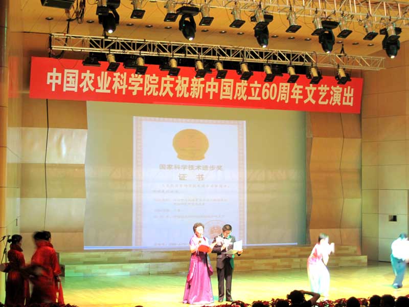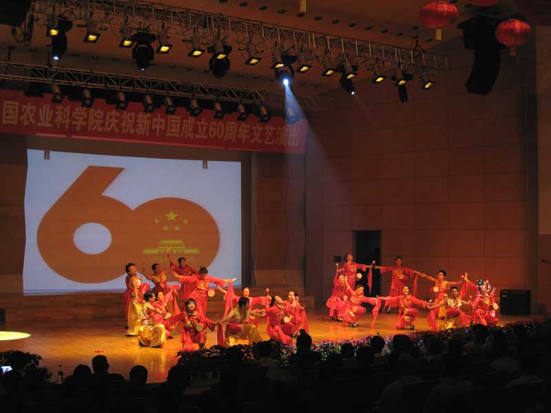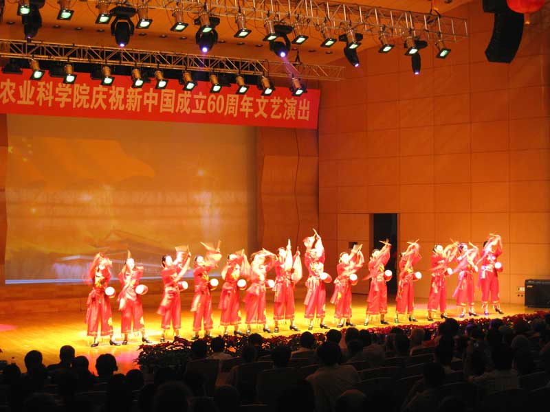 9月16日下午,由院直屬機(jī)關(guān)黨委主辦、院工會(huì)承辦的“中國農(nóng)業(yè)科學(xué)院慶祝新中國成立60周年文藝演出”,伴隨著歡慶的鑼鼓、優(yōu)美的樂曲和歡快的舞蹈拉開了的帷幕。 院領(lǐng)導(dǎo)、京區(qū)各單位黨政領(lǐng)導(dǎo)班子成員、部分在職職工和離退休人員1000多人參加了演出活動(dòng)。