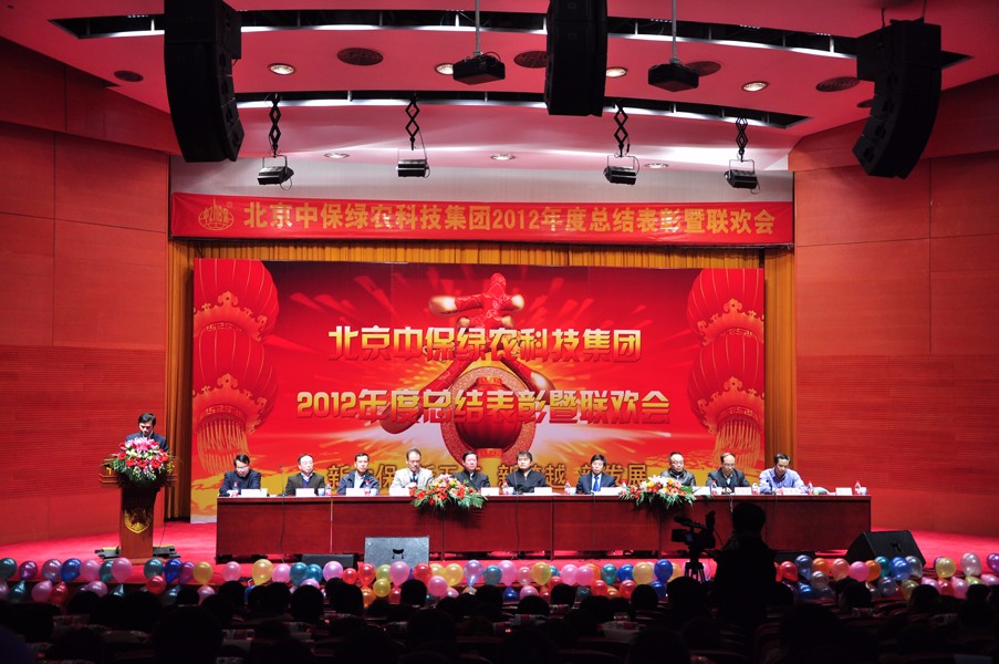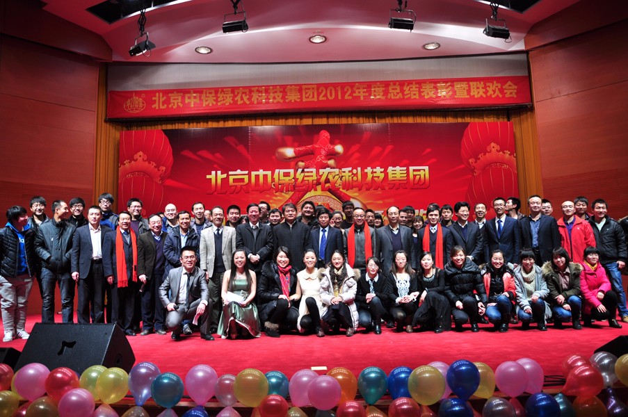 龍騰盛世歲更替,春滿神州喜滿懷。中保綠農(nóng)科技集團公司2012年度總結(jié)表彰暨聯(lián)歡會于2013年2月2日下午在中國農(nóng)業(yè)大學(xué)報告廳隆重舉行。中國農(nóng)科院副院長、植保所所長、集團公司董事長吳孔明院士親臨會場,參加會議的領(lǐng)導(dǎo)還有中國農(nóng)科院成果轉(zhuǎn)化局袁龍江局長、王登山副局長,中國農(nóng)科院植保所張步江書記、陳萬權(quán)副所長、鄭永權(quán)副所長、邱德文副所長、成果轉(zhuǎn)化處張東升處長。工作總結(jié)暨表彰大會由集團公司副總經(jīng)理張剛應(yīng)主持。中保綠農(nóng)科技集團公司400余名員工參加了會議。