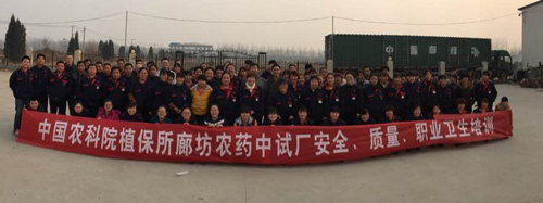 3月7日,中國(guó)農(nóng)科院植保所廊坊農(nóng)藥中試廠安全、質(zhì)量、職業(yè)衛(wèi)生培訓(xùn)會(huì)在廊坊農(nóng)藥廠召開,本著認(rèn)真負(fù)責(zé)的態(tài)度,為徹底貫徹“安全生產(chǎn)、嚴(yán)把質(zhì)量關(guān)”的精神,培訓(xùn)會(huì)再次強(qiáng)調(diào)“安全、質(zhì)量、職業(yè)衛(wèi)生”一個(gè)都不能少。