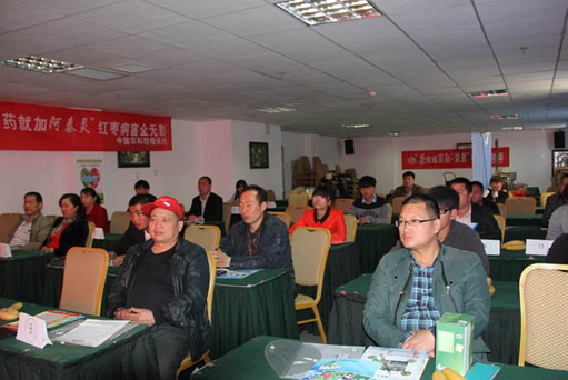 阿克蘇地區(qū)主要種植紅棗,左葉信從產(chǎn)品技術(shù)的角度與參會人員進(jìn)行了棗樹病蟲害防治經(jīng)驗(yàn)交流,并進(jìn)行有獎問答,互動效果顯著,現(xiàn)場反應(yīng)良好。會上,公司客戶王正峰就中?!疤肯ⅰ焙汀熬┎省碑a(chǎn)品現(xiàn)場說法,并感謝中保集團(tuán)科技下鄉(xiāng)、服務(wù)三農(nóng)帶來的各項(xiàng)惠民政策和優(yōu)質(zhì)產(chǎn)品及提供的各項(xiàng)技術(shù)服務(wù)支持。在聽了“阿泰靈”產(chǎn)品介紹和使用者反饋的情況之后,參會人員紛紛現(xiàn)場訂貨,并與公司人員熱情合影留念。