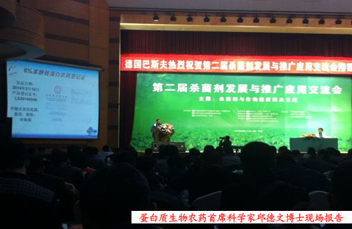 會上,中國農科院植保所邱德文副所長,應邀作了《生物殺菌劑研發(fā)與應用現(xiàn)狀及未來趨勢》的報告,將理論聯(lián)系實際,從專業(yè)的角度詳細介紹了新型蛋白質生物農藥——“阿泰靈”的研發(fā)過程,作用原理,應用情況,發(fā)展前景等。作為可提高植物免疫力,調節(jié)生長,減少病蟲害的發(fā)生的一劑良藥,由中國農科院植保所廊坊農藥中試廠生產的“阿泰靈”產品,符合國家農藥使用、農藥減量、食品安全的相關要求,被認為是植物健康劑的典型代表,得到國內外專家的一致首肯和廣泛贊譽。