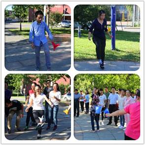 本次活動共分為五個項目(一鼓作氣、蘇秦背“毽”、花好月圓、團(tuán)團(tuán)圓圓、普天同慶)進(jìn)行,以部門團(tuán)隊形式報名參賽,用時最短者勝出。隨著總裁判一聲哨響,運動員們認(rèn)真有序地投入到比賽當(dāng)中,其他隊員們在一旁鼓勁吶喊,在比賽活動中彰顯了“發(fā)揮群體優(yōu)勢,塑造團(tuán)隊精神”的企業(yè)文化理念,進(jìn)一步增強了員工的團(tuán)隊意識。經(jīng)過緊張激烈的角逐,市場二組榮獲本次活動團(tuán)體第一,市場部劉勇獲得“一鼓作氣”(單踢)第一名、財務(wù)部張君、張磊磊獲得“蘇秦背‘毽’”第一名、市場部許笑宇獲得“花好月圓”第一名、財務(wù)部張磊磊獲得“團(tuán)團(tuán)圓圓”(套圈)第一名、市場二組獲得“普天同慶”第一名。集團(tuán)公司領(lǐng)導(dǎo)親自為獲獎運動員頒獎,祝賀他們?nèi)〉贸煽兊耐瑫r,再接再厲,努力實現(xiàn)新的突破。