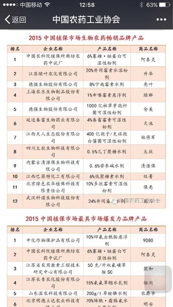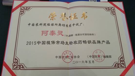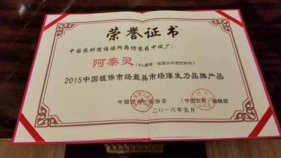 阿泰靈榮獲生物農(nóng)藥暢銷品牌產(chǎn)品第一名