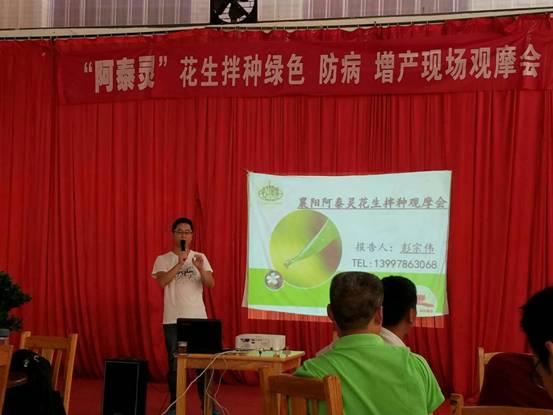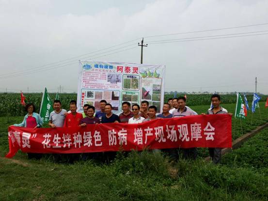 2016年7月7日至10日,隨著集團(tuán)公司百日會戰(zhàn)如火如荼地開展,中南大區(qū)湖北區(qū)域團(tuán)隊的同事們頂著炎炎夏日,在湖北省襄陽市雙溝鎮(zhèn)、陳集鎮(zhèn)兩地組織召開了“阿泰靈”——花生增產(chǎn)抗病示范觀摩會,吸引了當(dāng)?shù)亟?jīng)銷商、農(nóng)戶等近百人參加。示范地區(qū)結(jié)果表明:花生“窩空和死苗”問題得到有效解決。