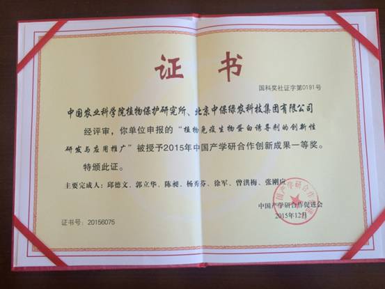 第九屆中國(guó)產(chǎn)學(xué)研合作創(chuàng)新大會(huì)在昆舉行 “作物免疫生物蛋白質(zhì)誘抗劑的創(chuàng)新性研發(fā)與應(yīng)用推廣”榮獲一等獎(jiǎng) ...全文分類[ 舊版新聞 ] 2016-09-06